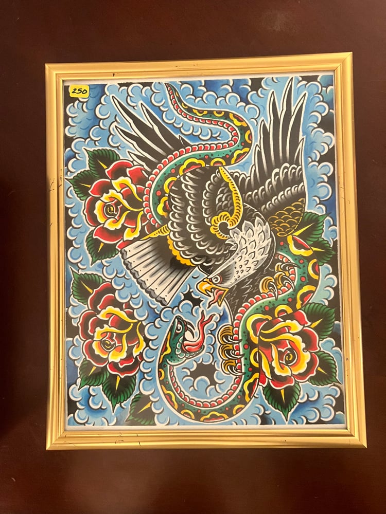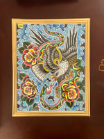11”x14” framed original watercolor, ink, and acrylic painting on 140 lb cold press watercolor paper.