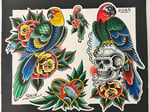 Original hand painted 11”x14” flash sheet. Watercolor, ink, and acrylic on 140 lb cold press watercolor paper