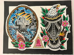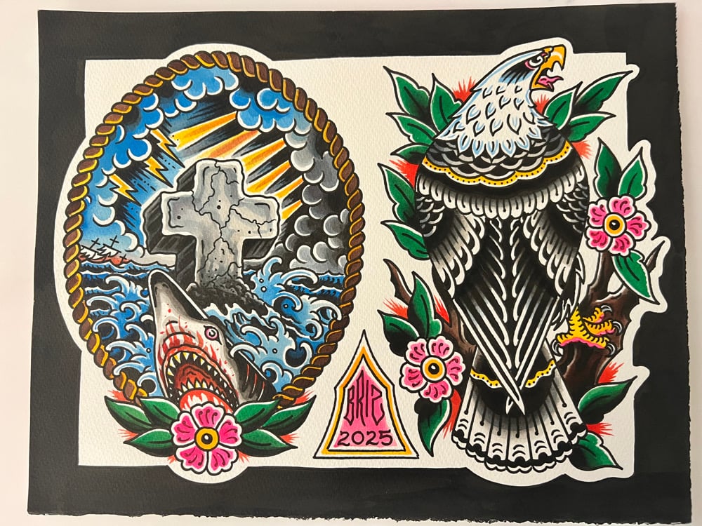 Original hand painted 11”x14” flash sheet. Watercolor, ink, and acrylic on 140 lb cold press watercolor paper